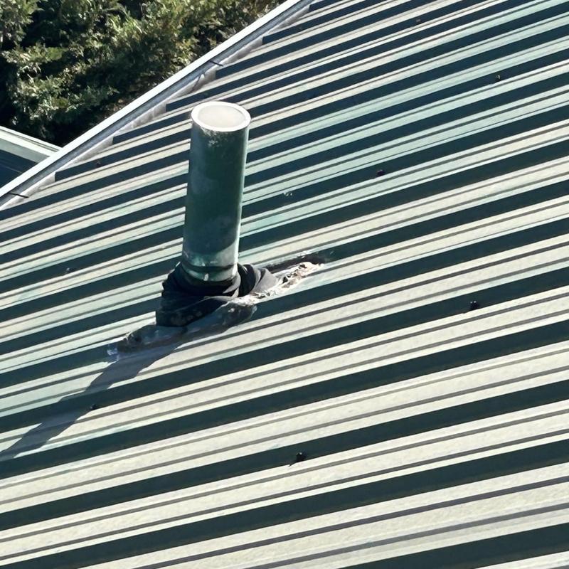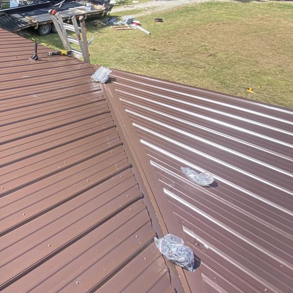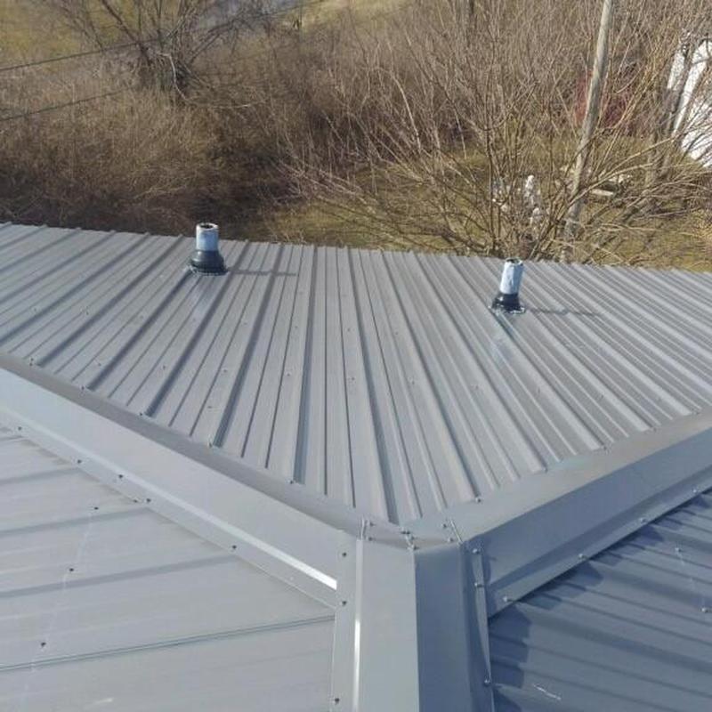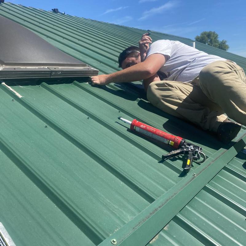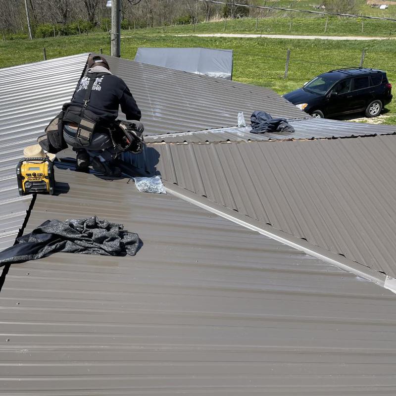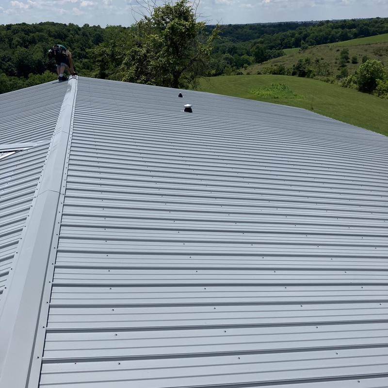 SCC Commercial and Metal Roofing completed roof repairs in Vanceburg, Kentucky. The team replaced damaged screws, sealed roof protrusions, and installed a uni-vent along the ridge cap to improve ventilation and weather resistance.
