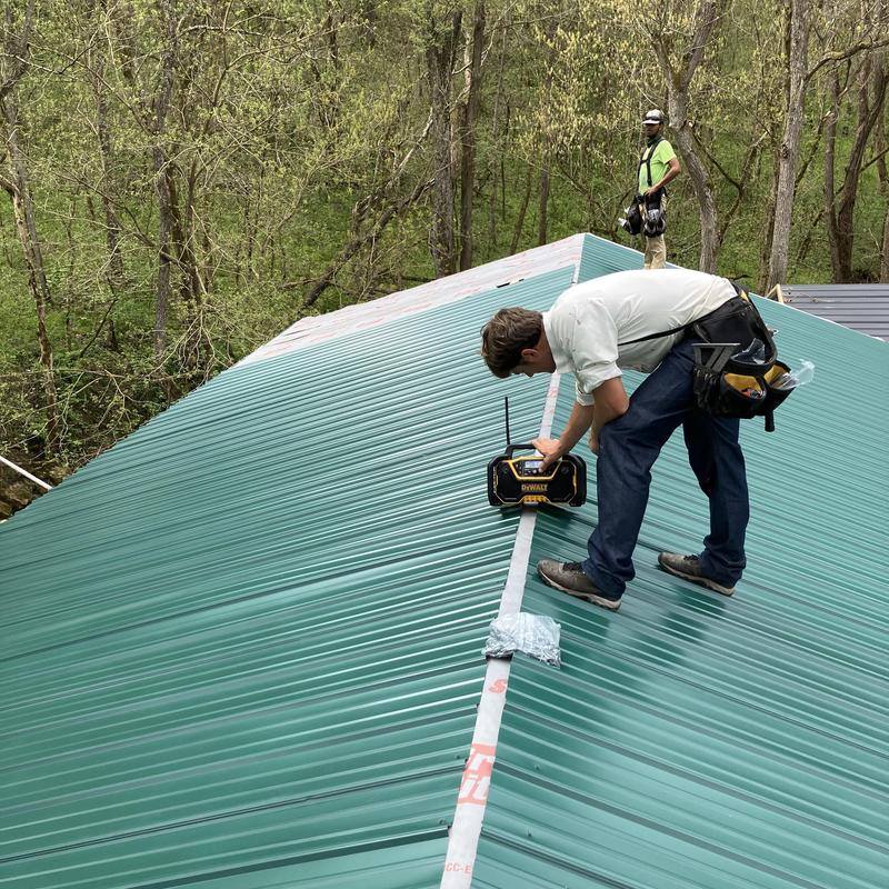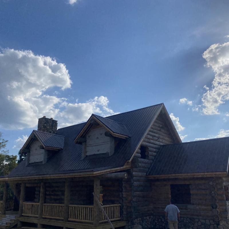 SCC Commercial and Metal Roofing installed a new metal roof on a cabin under construction in Vanceburg, Kentucky. This marks their second roofing project for this customer, contributing to the final phase of the cabin's build.