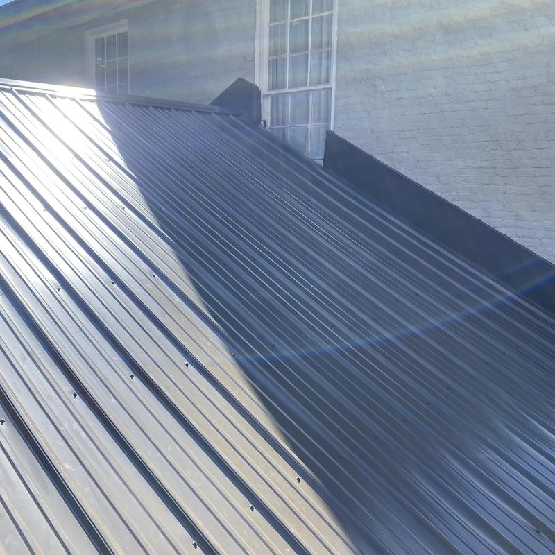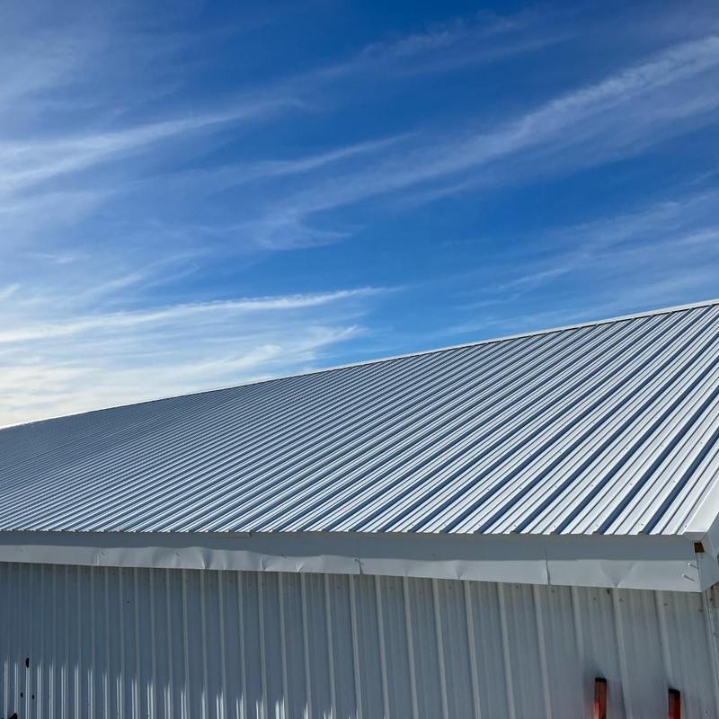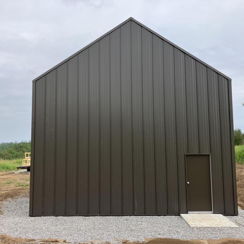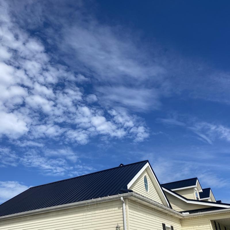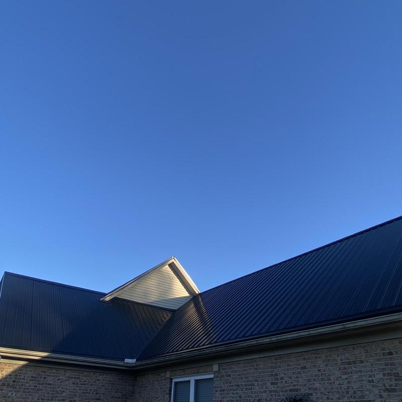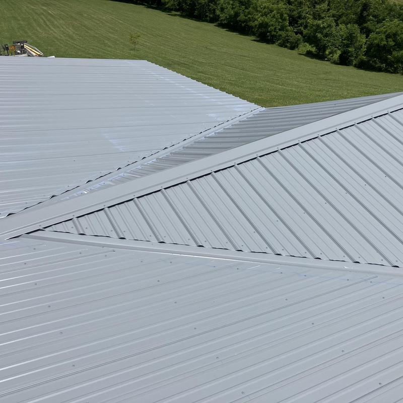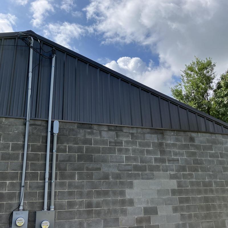 SCC Commercial and Metal Roofing installed Everloc 26-gauge metal panels on the roof and siding in Richmond, Kentucky. The team fitted a 16-panel standing seam roof with one rib, added drip edges, rakes, and ridge, and completed siding with proper j-channel, rat-guard, and corner trims around windows and doors.