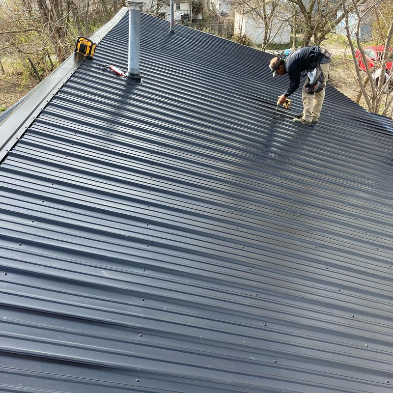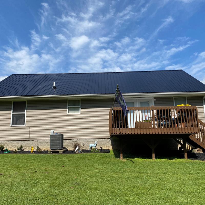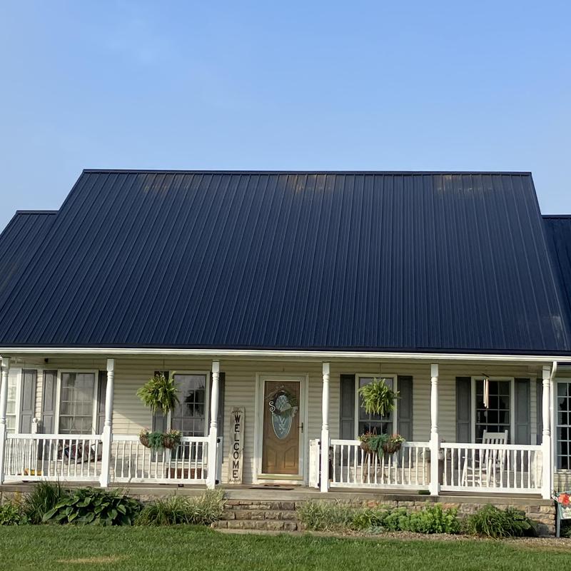 SCC Commercial and Metal Roofing installed 1x4 boards spaced two feet apart and applied #1 28-gauge Everlast metal roofing on a residential property in Morehead, Kentucky. This roofing system offers precise panel alignment and durable weather protection.