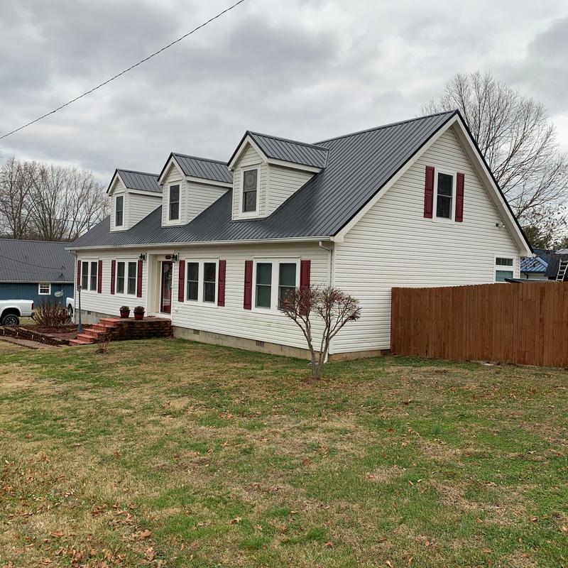 SCC Commercial and Metal Roofing installed a new metal roof in Vanceburg, Kentucky. The project included removing old shingle vents and adding a vented ridge system. All necessary trims were applied to ensure proper function and fit.
