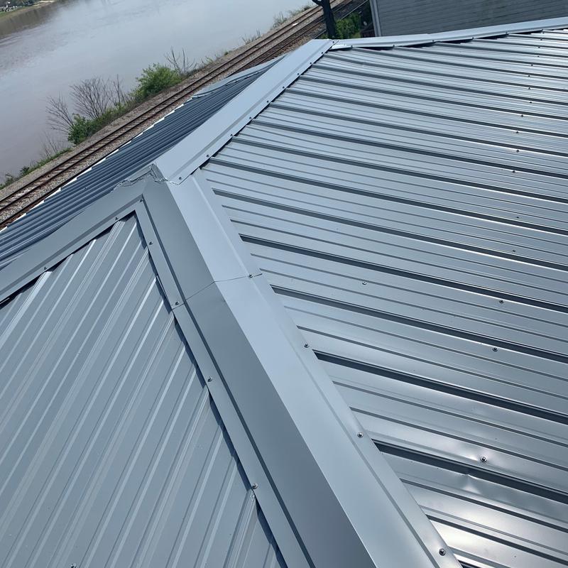 SCC Commercial and Metal Roofing installed 28-gauge Everlast metal roofing with proper corners, W-valley, and ridge cap in Paris, Kentucky. This work improved roof durability and ensured correct water runoff handling.
