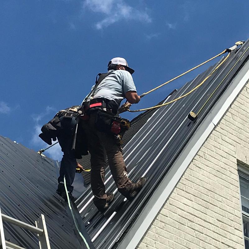 SCC Commercial and Metal Roofing installed a steep-slope roof using safety harnesses and secure connection equipment. This roofing project took place in Morehead, Kentucky, and followed proper safety procedures to complete the installation efficiently and safely.