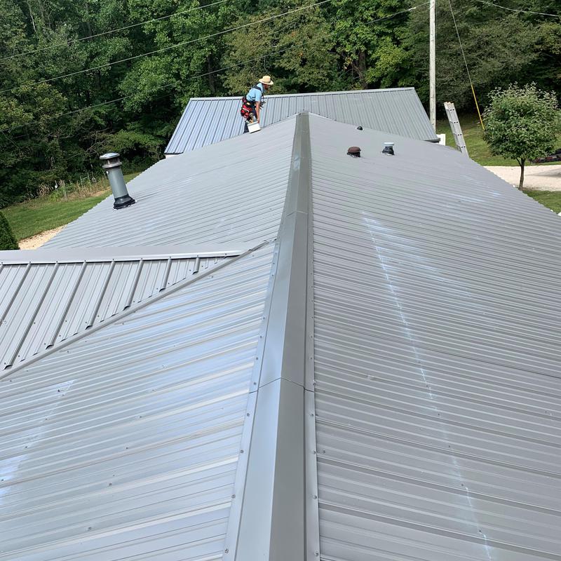 SCC Commercial and Metal Roofing removed an existing cedar shake roof and installed #1 28-gauge Everlast metal roofing. The project included full cleanup and metal installation. This service took place in Vanceburg, Kentucky.