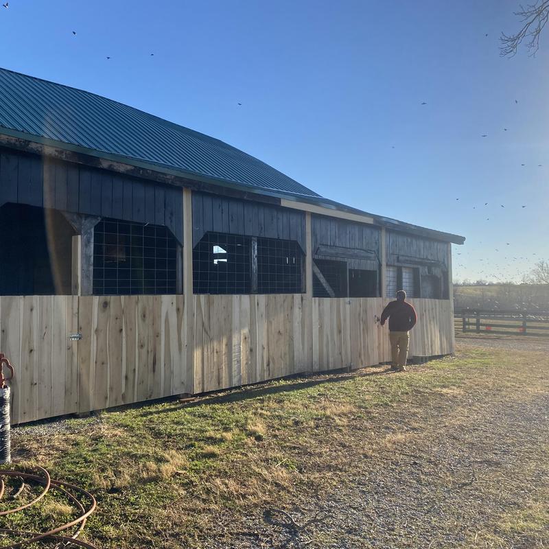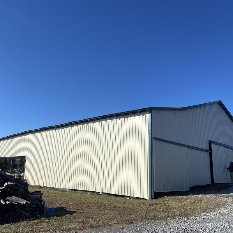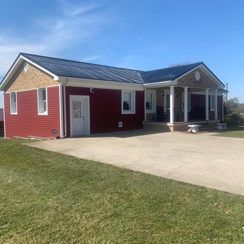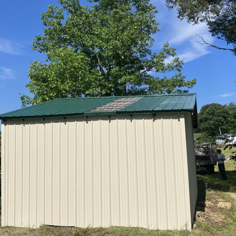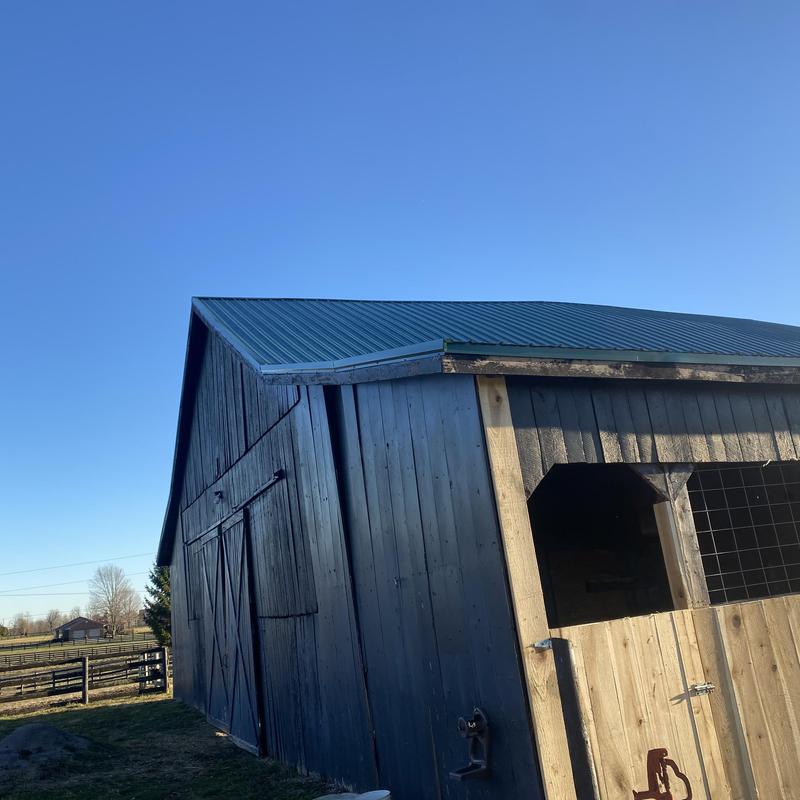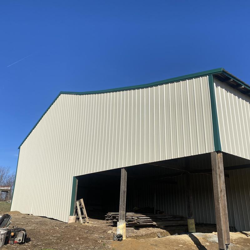 SCC Commercial and Metal Roofing installed a 28-gauge Everlast metal roof in Morehead, Kentucky. The team also added metal siding to enclose a picnic area and installed sliding barn doors. This project was completed for a returning customer seeking functional improvements for their outdoor space.