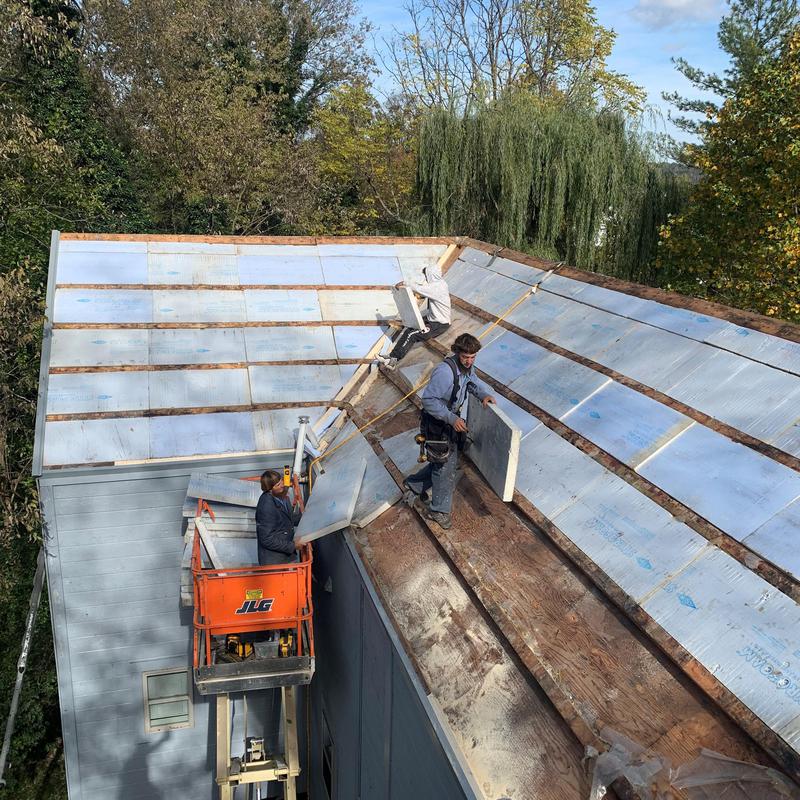 SCC Commercial and Metal Roofing replaced an old standing seam roof on a historic home in Ripley, Ohio. The team removed the existing roof, installed a bubble vapor barrier, and added new metal roofing for long-term durability.