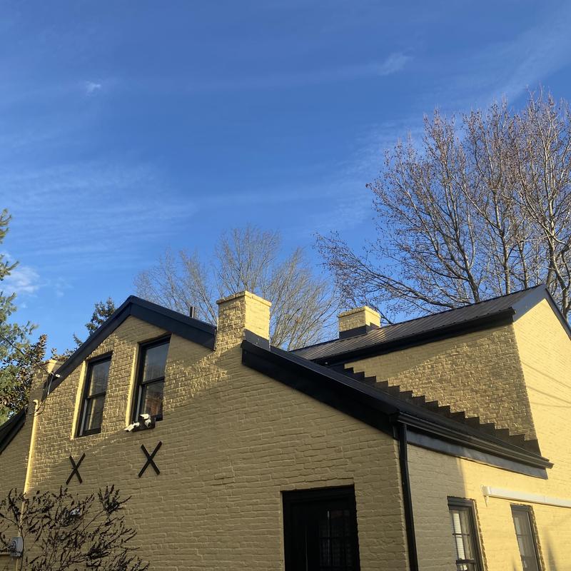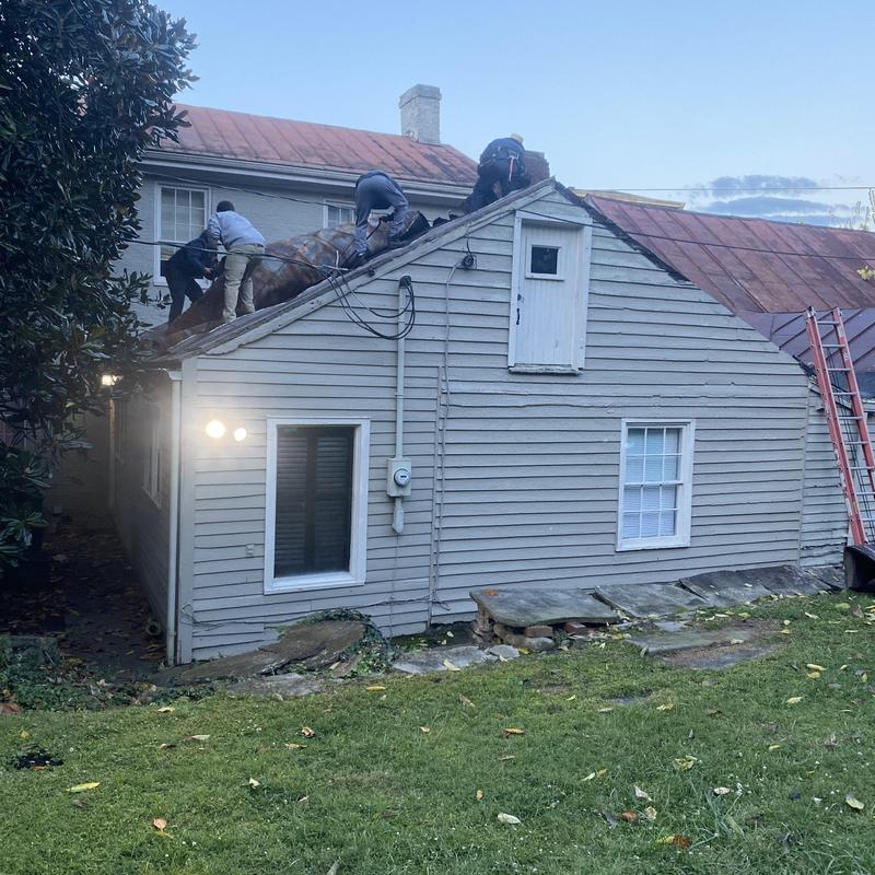 SCC Commercial and Metal Roofing replaced the existing roof with new black 5V metal roofing on a historical home in Old Washington Village. This roofing project took place in Washington, Kentucky, and involved careful removal of the original roofing materials.