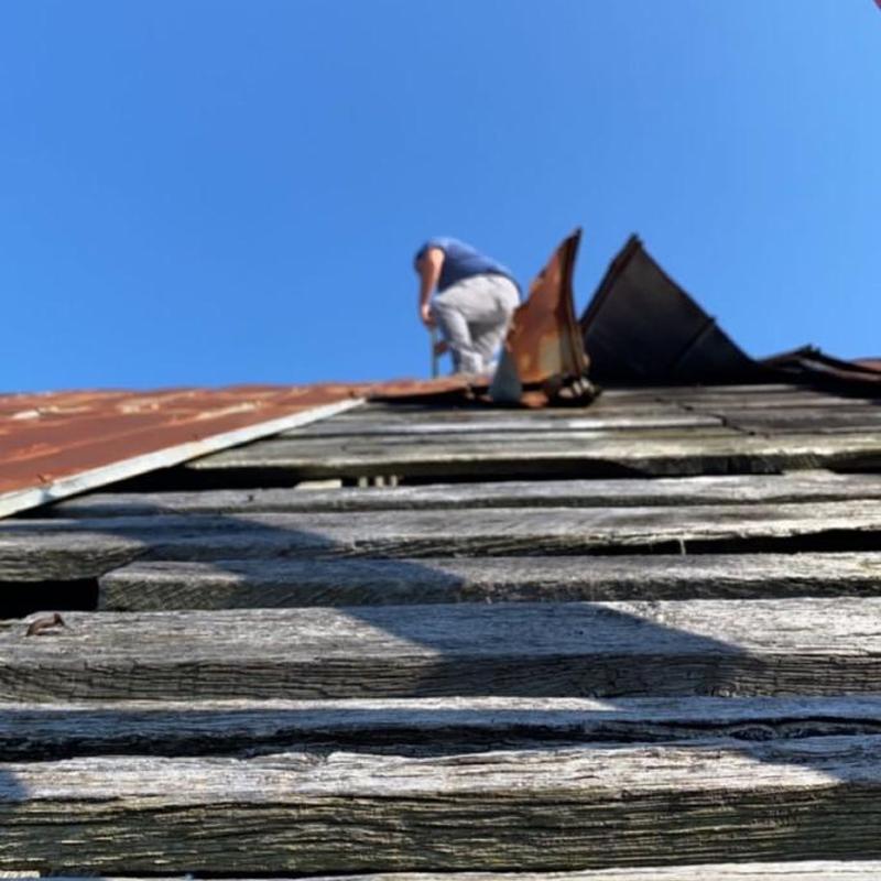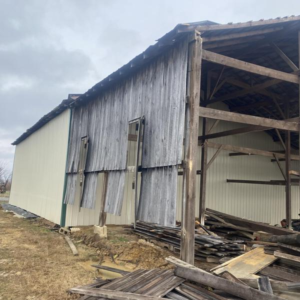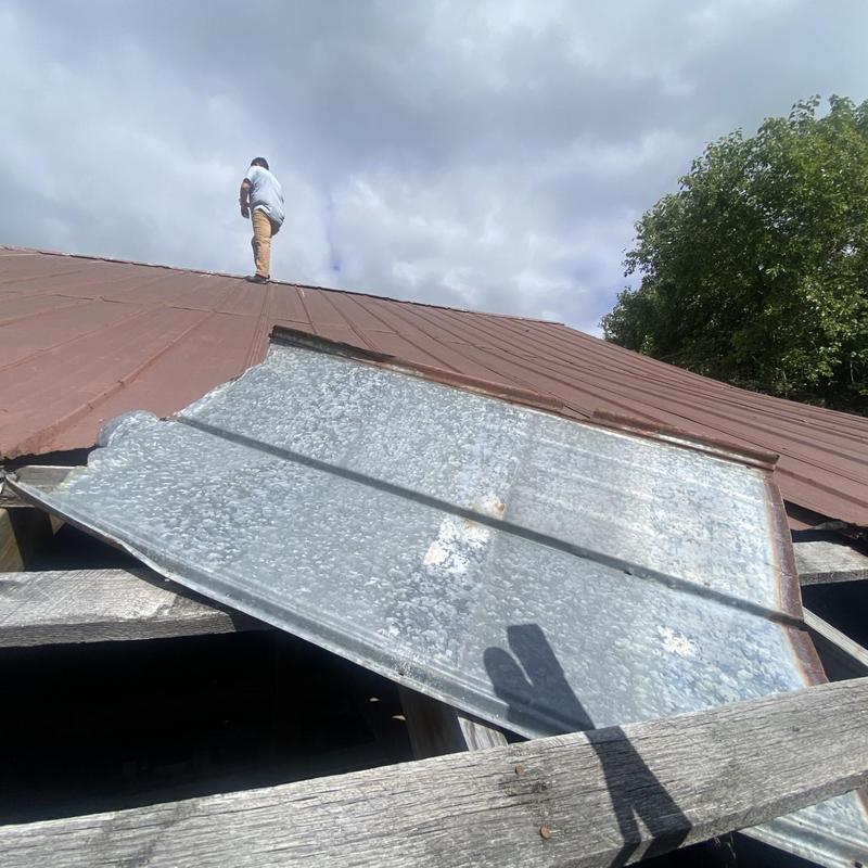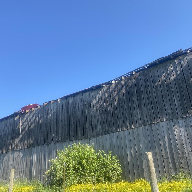SCC Commercial and Metal Roofing inspected a tobacco barn roof in Augusta, KY. The team identified wind damage on multiple sections along both sides of the roof. The inspection helped assess structural impact and determine necessary roof repairs to prevent further weather-related issues.