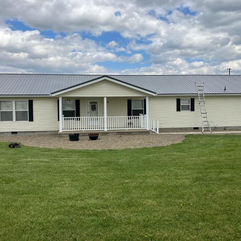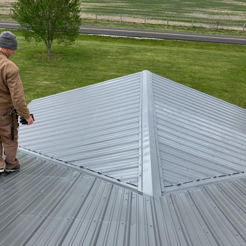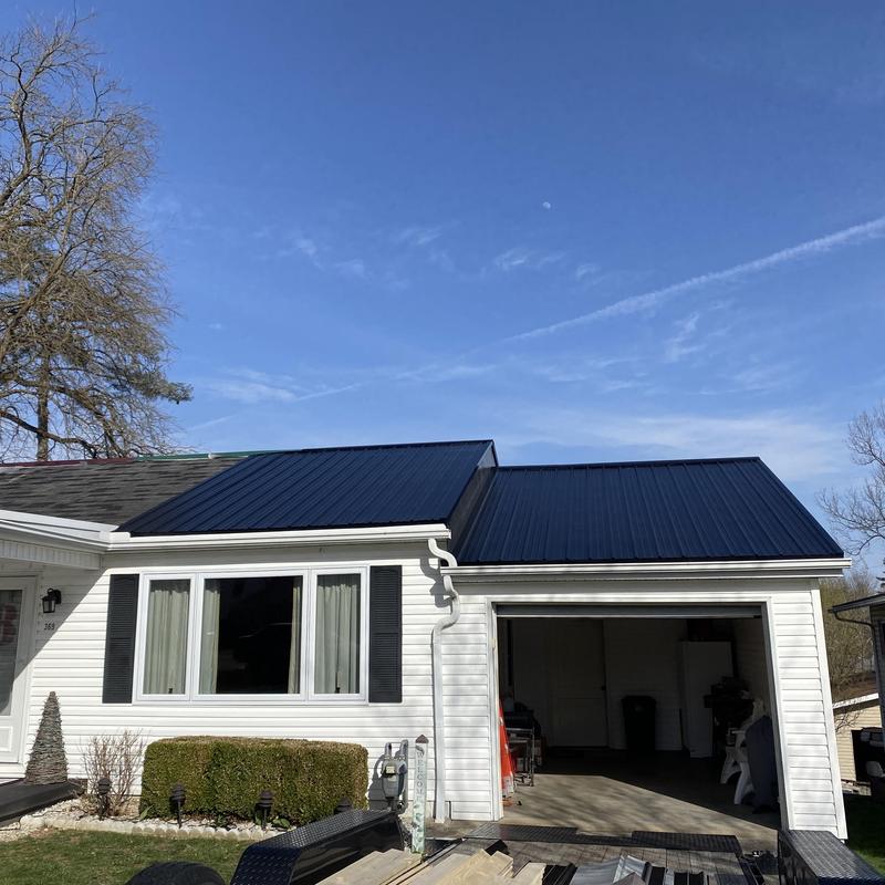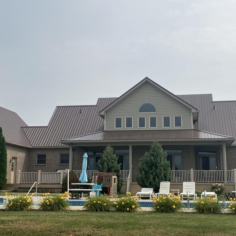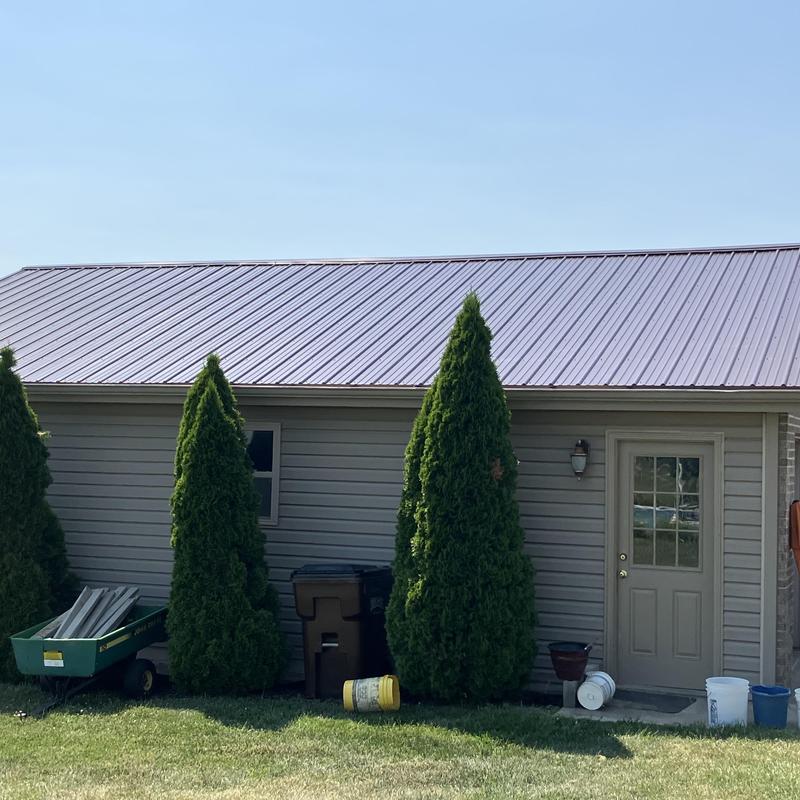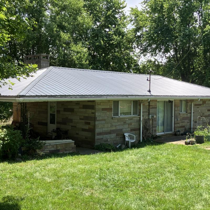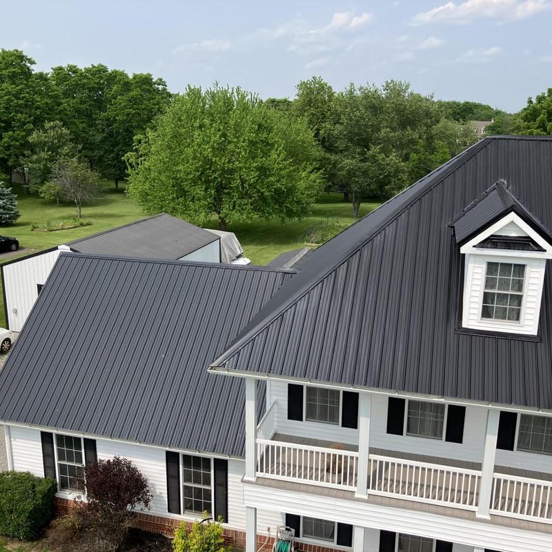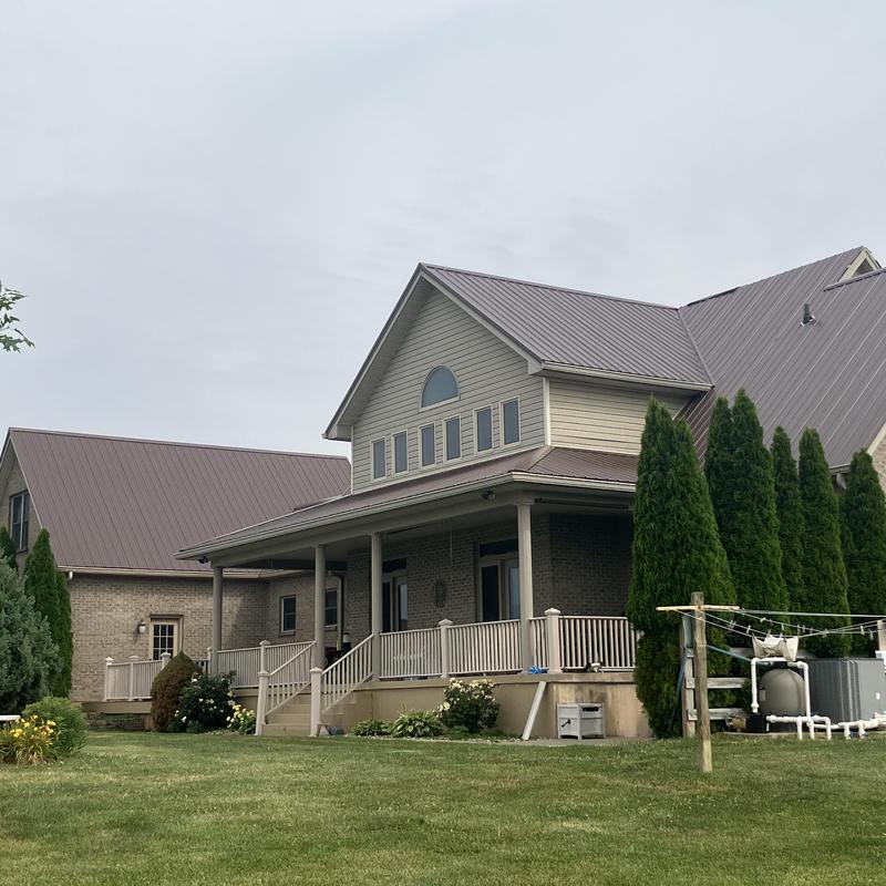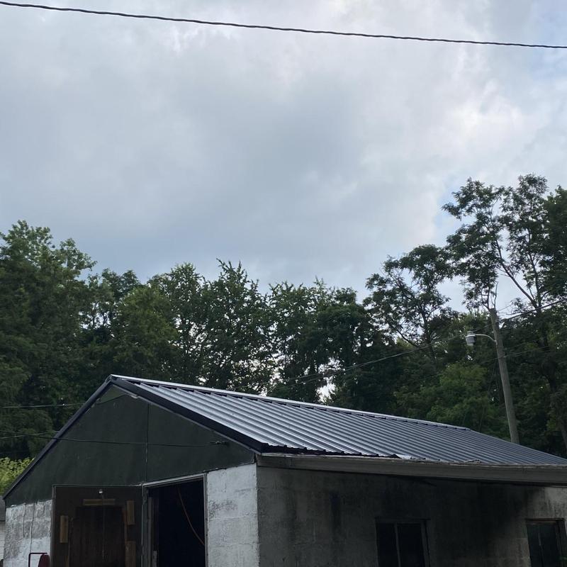 SCC Commercial and Metal Roofing installed a metal roof on a hip-style roof in West Union, Ohio. The team also offered matching roofing options for nearby structures like sheds or garages, providing a consistent look for multiple buildings on the property.