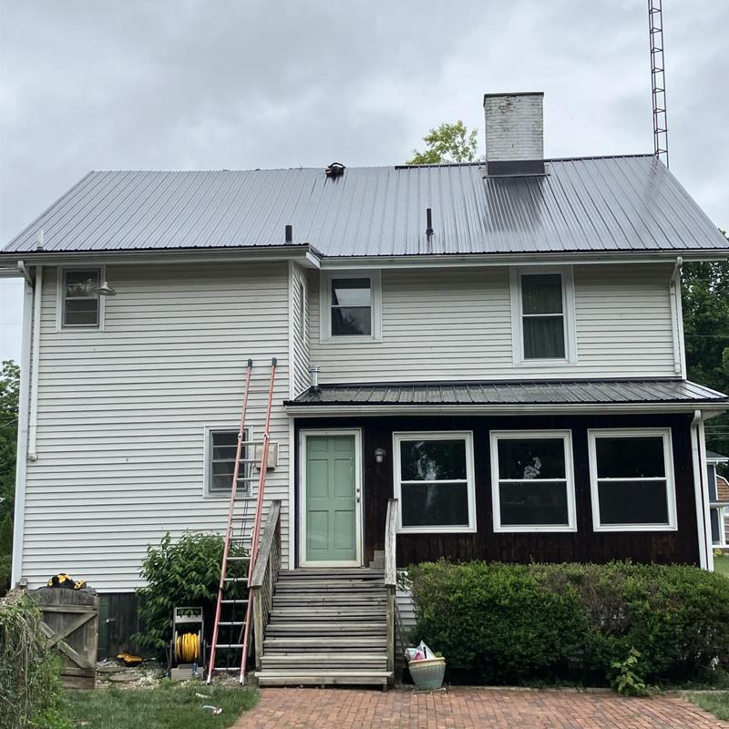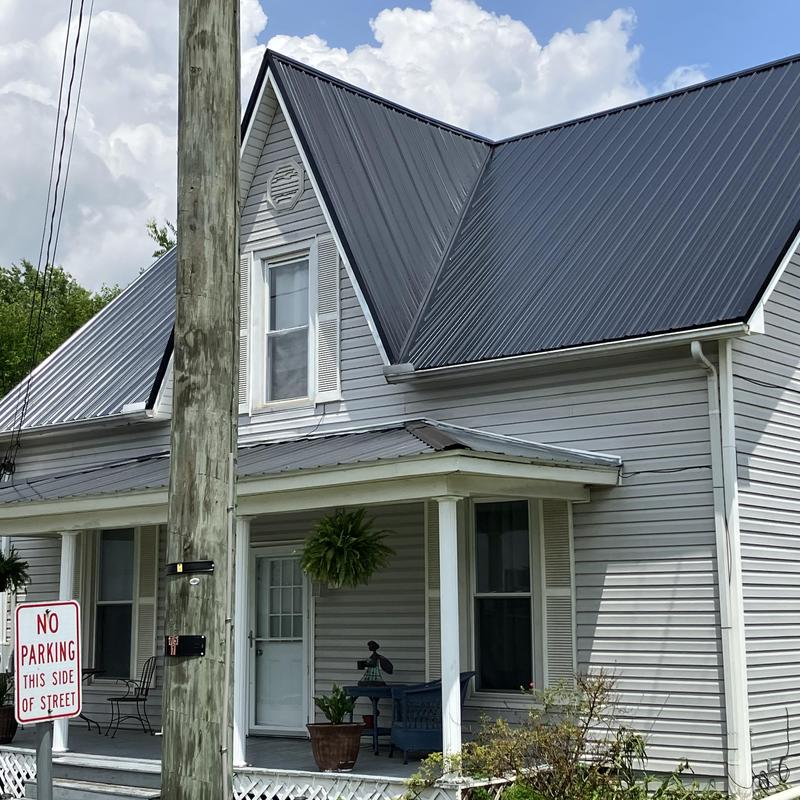 SCC Commercial and Metal Roofing installed new 1x4s, synthetic felt, and #1 28-gauge Everlast metal roofing on a parsonage in Vanceburg, Kentucky. This work was completed as part of an insurance restoration project.