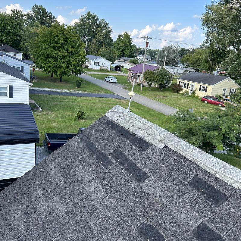 SCC Commercial and Metal Roofing inspected a roof with wind-damaged, missing shingles in Hillsboro, Ohio. The team provided a repair estimate for the homeowner's insurance claim. The project concluded with a full roof replacement, restoring the home’s weather protection.