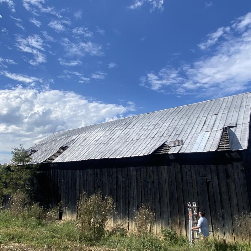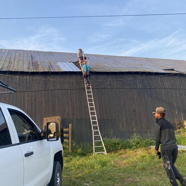 SCC Commercial and Metal Roofing repaired a barn roof in Vanceburg, Kentucky after wind damage. The team worked with insurance to approve the repair and replaced damaged sections using 5V and Crimson Red metal roofing along with new wood sheeting. This project restored the roof's structure and protected the building from further weather damage.