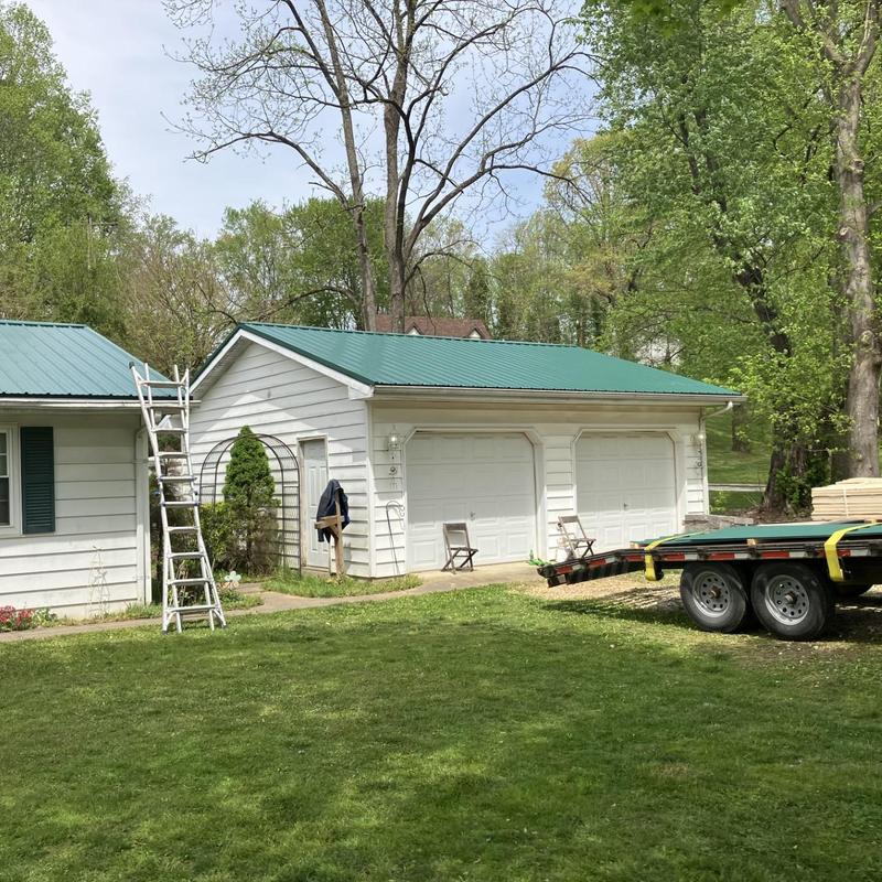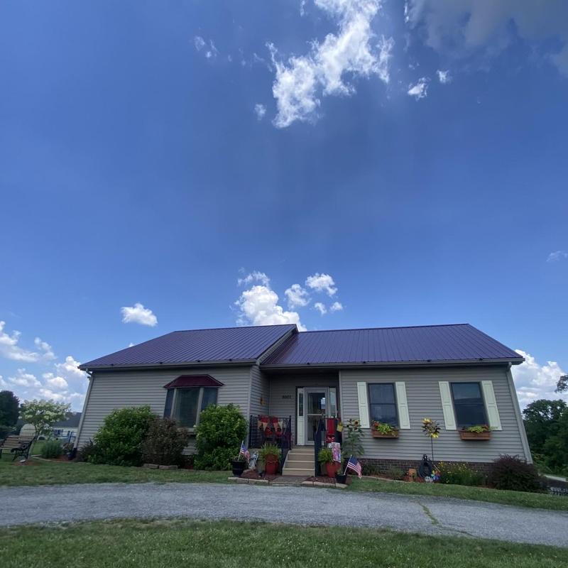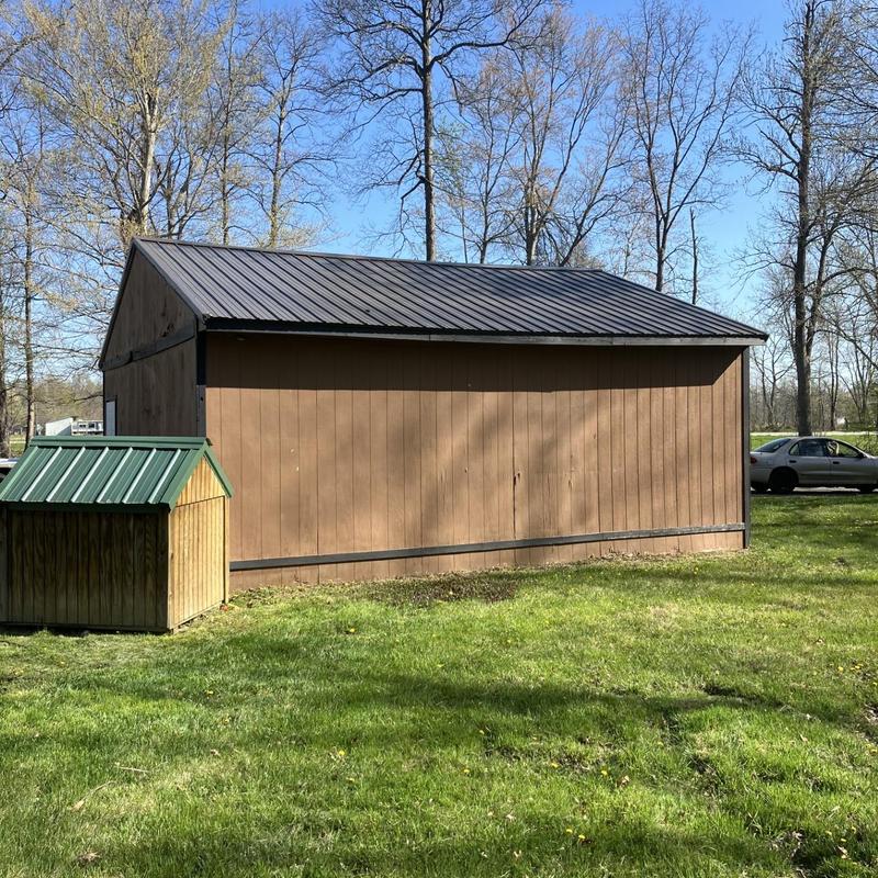SCC Commercial and Metal Roofing installed a metal roof on a hip-style roof in West Union, Ohio. The team also offered matching roofing options for nearby structures like sheds or garages, providing a consistent look for multiple buildings on the property.