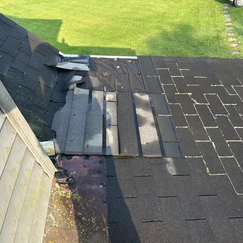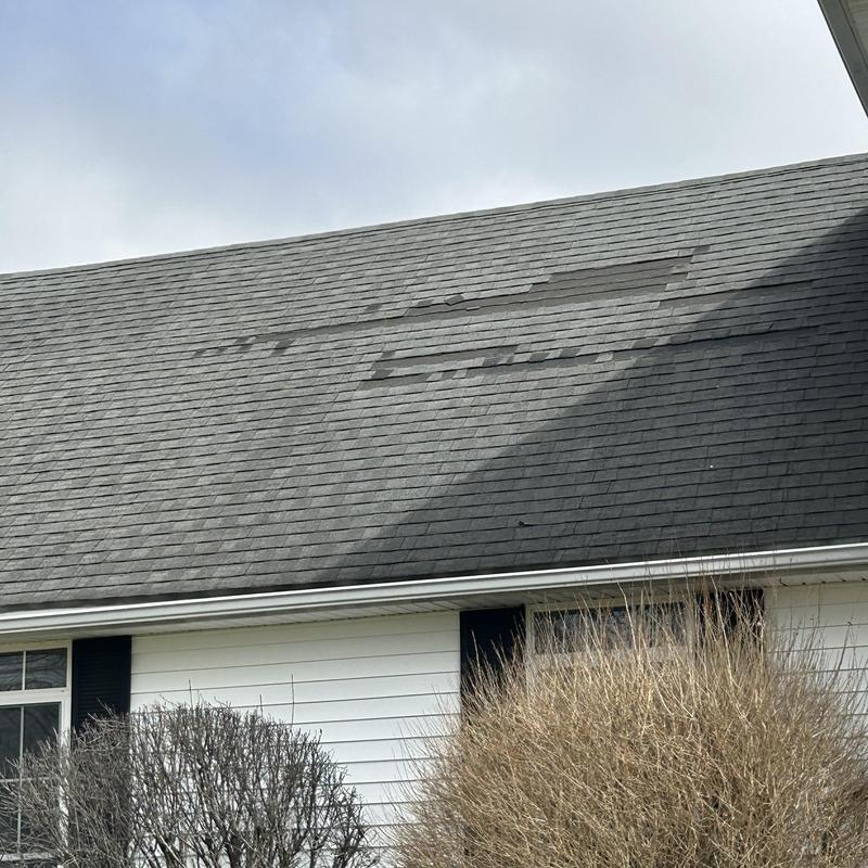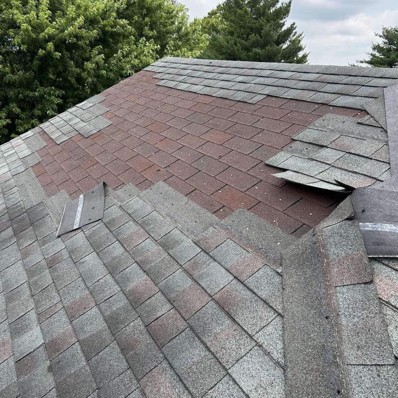 SCC Commercial and Metal Roofing inspected a roof with wind-damaged, missing shingles in Hillsboro, Ohio. The team provided a repair estimate for the homeowner's insurance claim. The project concluded with a full roof replacement, restoring the home’s weather protection.