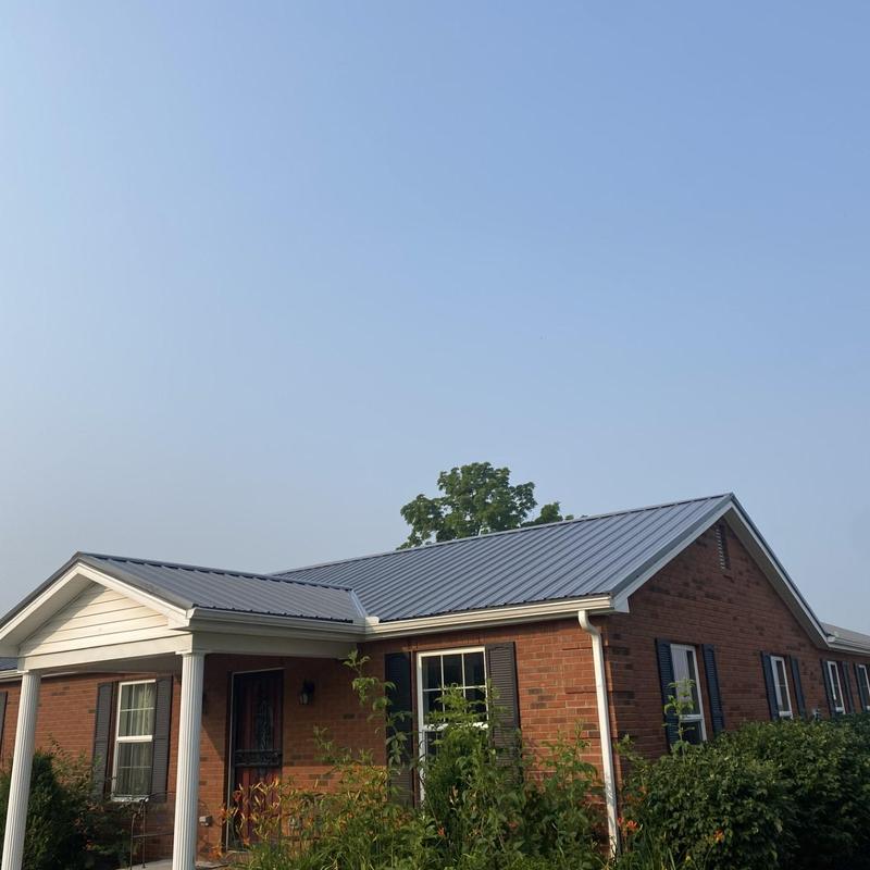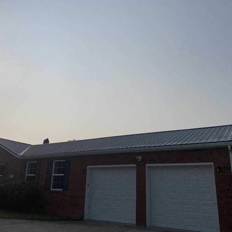SCC Commercial and Metal Roofing replaced a shingle roof with 28-gauge Everlast metal in Vanceburg, Kentucky. The team installed 1x4 boards, synthetic felt, a vented ridge system, metal pipe boots, and all standard trim, including rakes, ridge caps, and sidewalls, to complete the metal roof system.