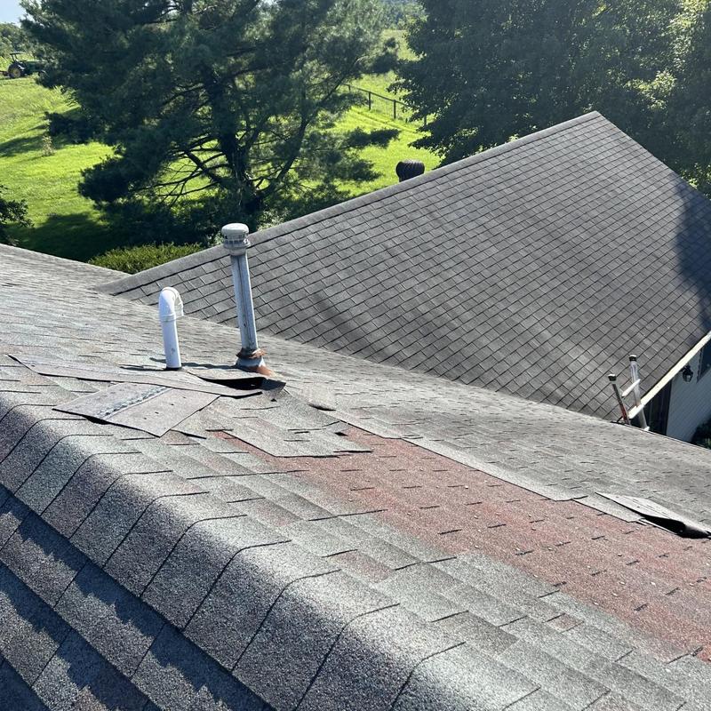 SCC Commercial and Metal Roofing inspected a property in Flemingsburg, Kentucky after a windstorm. The team identified missing shingles and siding, documented the damage with photos, and provided an estimate and insurance documentation to assist the client with their claim.