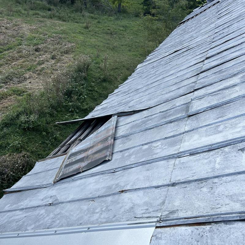 SCC Commercial and Metal Roofing installed a temporary roof patch on a home to prevent water intrusion in Vanceburg, Kentucky. The team also connected the homeowner with a company to install a new shingle roof and assist with the insurance claim process.